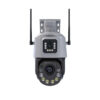Caméra de sécurité extérieure intelligente avec double écran, alimentée par l’énergie solaire et supportant WiFi et 4G. Dotée de suivi intelligent des mouvements humains, elle garantit une surveillance complète 24/7 avec vision nocturne, alarme PIR, et enregistrement vidéo haute définition.